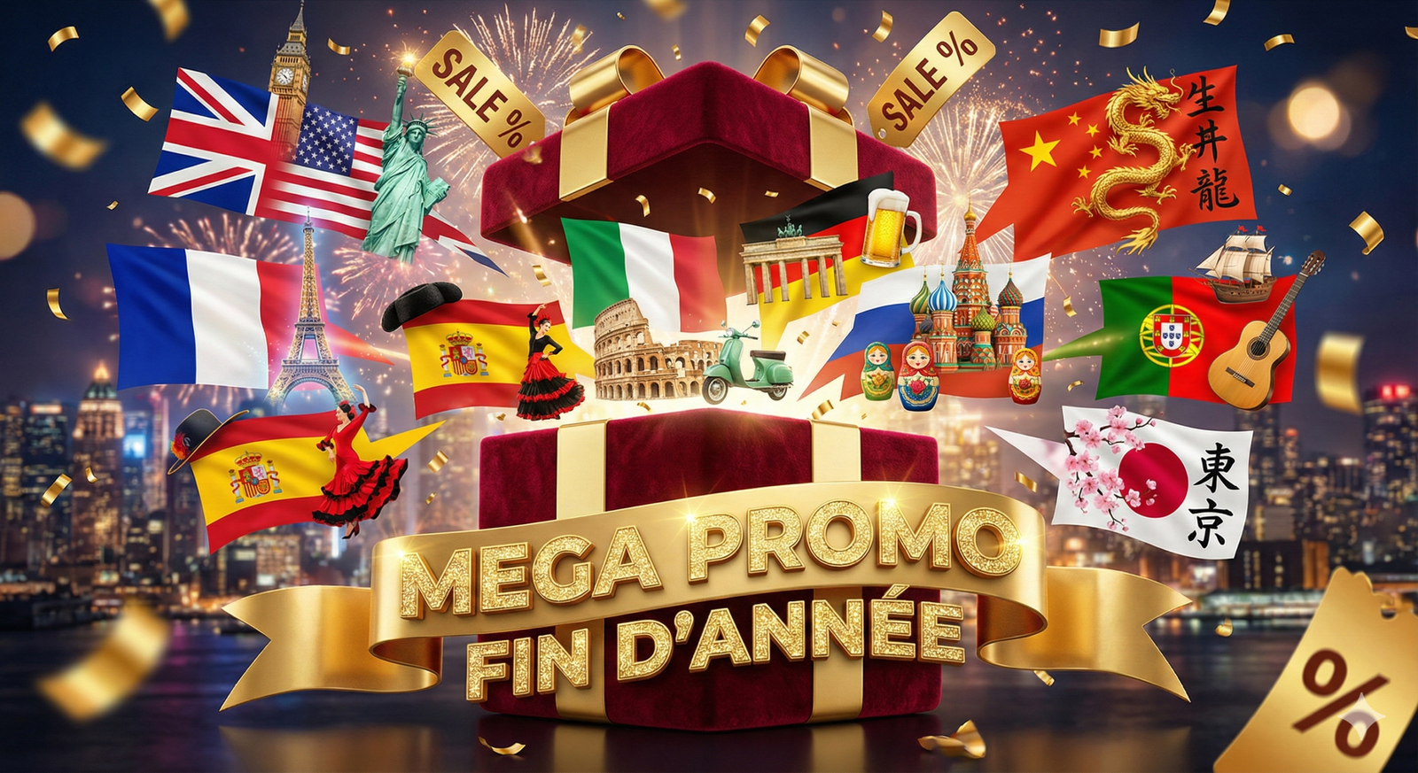 Ce pack de formation regroupe 9 langues essentielles : anglais, français, espagnol, italien, allemand, portugais, russe, chinois et japonais. Il est conçu pour répondre aux besoins des étudiants, professionnels, entrepreneurs et candidats à la mobilité internationale